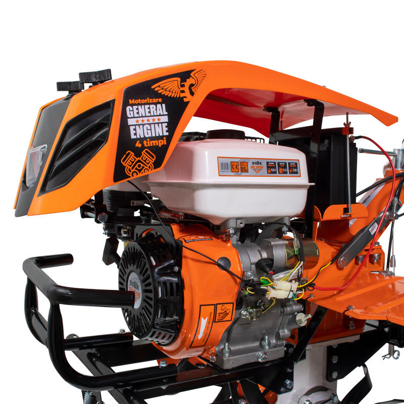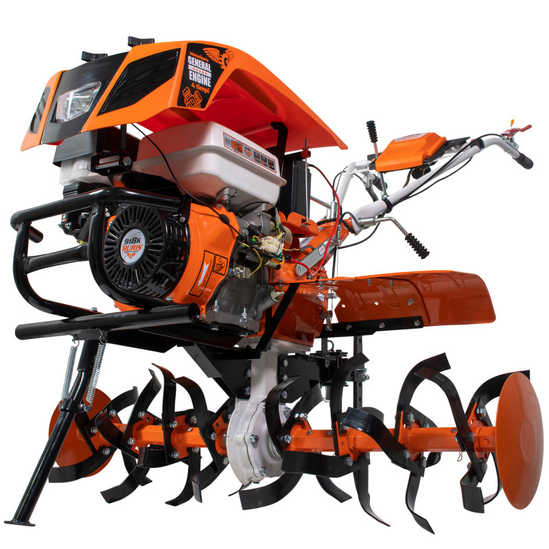 RURIS 918K  je vybavený 18 HP General Engine a kultivačnými nožmi s nastaviteľnou šírkou od 750 mm do 1100 mm.